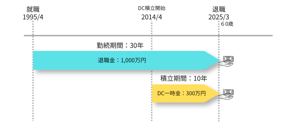 退職金1,000万円のケースでは税額差は出ませんが、60歳でDCを先に受け取るメリットはあります。
